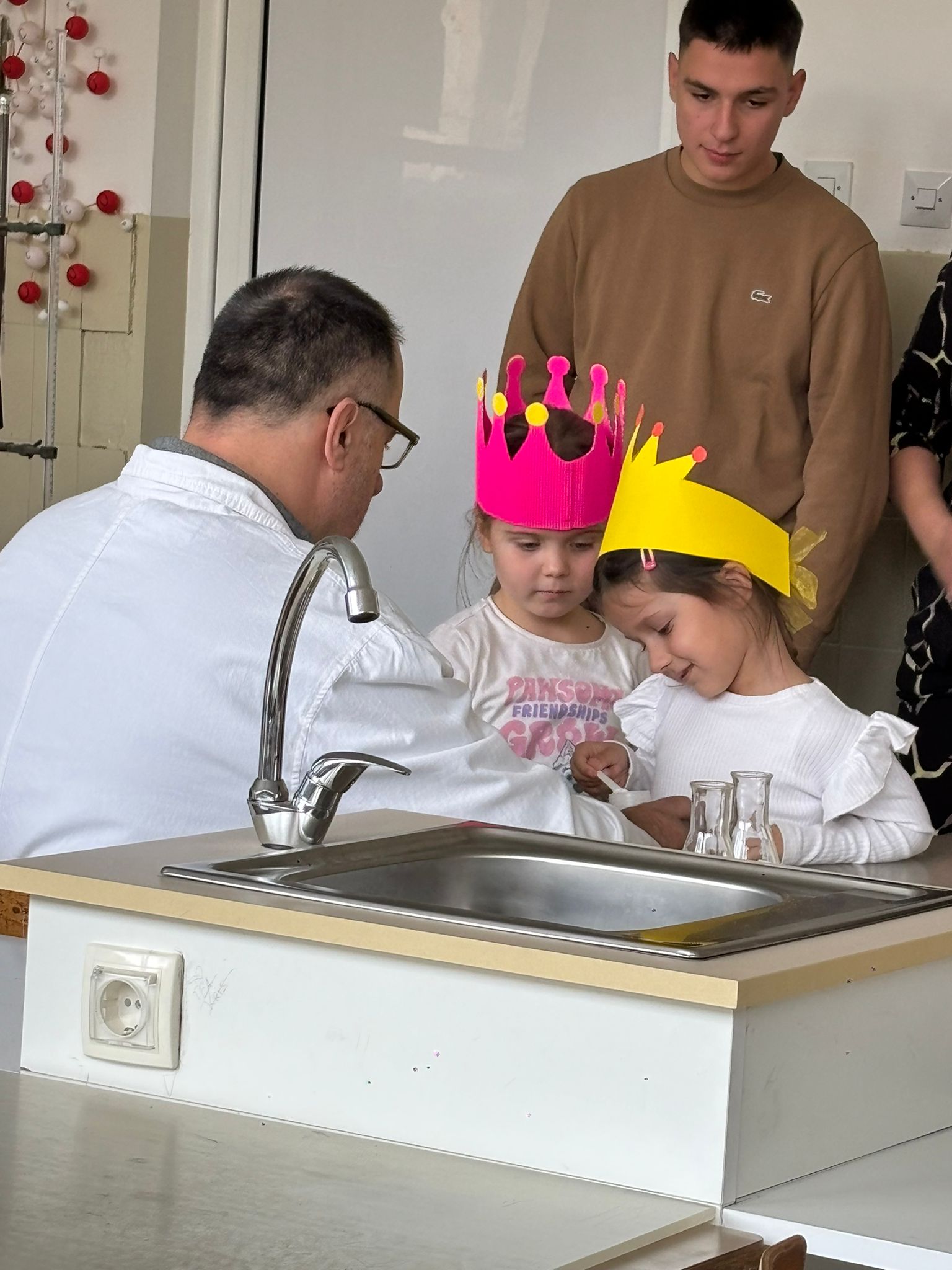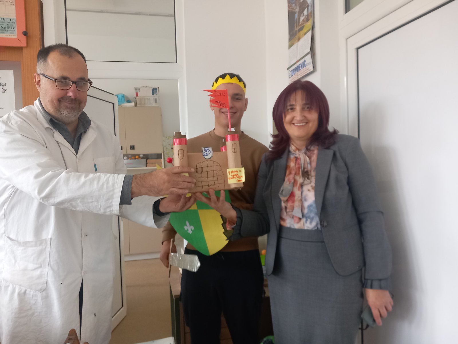 У оквиру сарадње Средње школе и Предшколске установе „Пахуљице“, дана 22.10.2025. године организована је посета деце из вртића у пратњи васпитача Гордане Цинцаревић и Маје Јеличић. Госте је дочекала директорка школе Жаклина Ђорђевић, изразивши задовољство због остварене сарадње и важности повезивања образовних установа. Циљ ове посете био је упознавање деце са школом, као и проширивање дечијих сазнања о дворцима и посета часа који су заједно одржали професор хемије Драган Миљковић и професор историје Мирјана Милисављевић Ђорђевић. У првом делу часа погледали су презентацију под називом „У краљевству двораца и витезова“, а у другом делу часа уз стручна објашњења професора хемије посматрали су два експеримента. По завршетку часа гости су се послужили освежењем које су за ову прилику припремили ученици и професори наше школе. Сусрет је протекао у ведрој и пријатној атмосфери уз жељу да се оваква сарадња настави и убудуће . . .